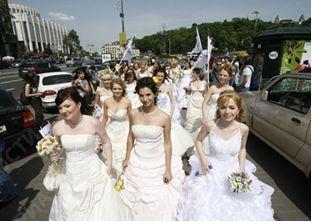Это уникальная возможность для недавних невест надеть белое платье, испытать приятные волнения свадебного дня и вместе с другими пройти по городу под восхищенными взглядами прохожих и объективами фото- и телекамер, а для незамужних девушек – впервые попробовать эти ощущения.