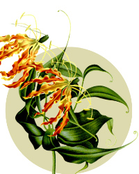 Глориоза роскошнаяЯ содержится во всех частях растения. Попадая в организм в большом количестве, он вызывает тошноту, рвоту, диарею, нарушается свертываемость крови и поражение почек.