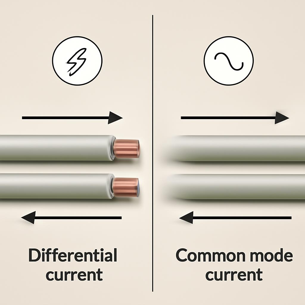 В любой двухпроводной линии передачи (например, в кабеле питания или шине данных) могут существовать два вида токов: