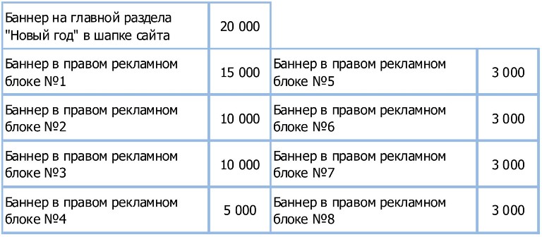 Мы размещаем в соответствующей рубрике яркие и интересные статьи примерного содержания "Встречаем новый год в ...", "10 идей новогодних подарков от ...", "Украшаем дом", "Как найти правильного Деда Мороза для своего ребенка", "Куда пойти после новогодних праздников", "Рецепты новогодних коктейлей", с Вашей красочной рекламой.
