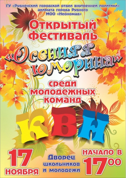 | Дорогие друзья! рады представить вашему вниманию всеми долгожданный фестиваль КВН "Осенняя юморина"!Открытый фестиваль "Осенняя юморина" проводится среди молодежных команд.Дата: 17 ноября в 17:00 - не пропустите!Место проведения: Дворец... | ||