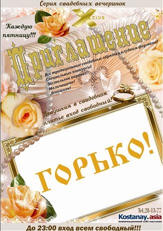 С ноября 2013 в X-CLUB серия свадебных вечеринок "ГОРЬКО!" |