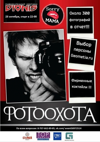 В ЭТОТ РАЗ НА ВАС БУДЕТ УСТРОЕНА ОХОТА!!!!ПОЙМАНЫ БУДУТ ВСЕ!!! ОКОЛО 300 КАДРОВ ВЕЧЕРИНКЕ В ОТЧЕТ!!!КОМПЕТЕНТНОЕ ЖЮРИ ВЫБЕРЕТ 3 ПРИЗЕРОВ, КОТОРЫМ НА ЮБИЛЕЙНОЙ ДЕСЯТОЙ СРЕДЕ "SORRY MAMA" ПОЛУЧАТ ПОДАРОК ОТ КЛУБА!!!! ЛУЧШАЯ ФОТОГРАФИЯ ОТЧЕТА...