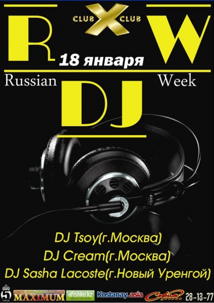 18 января! Суббота! Эксклюзивно в "X-CLUB"!!!!RUSSIAN DJ's WEEK!!!!!Сразу 3 диджея из РФ поделятся своей музыкой, настроением и мощнейшим зарядом позитивной энергии!Вас ожидает приятнейший отдых в невероятной атмосфере! DJ Cream(г.Москва)( www.djcream.ru/)DJ...
