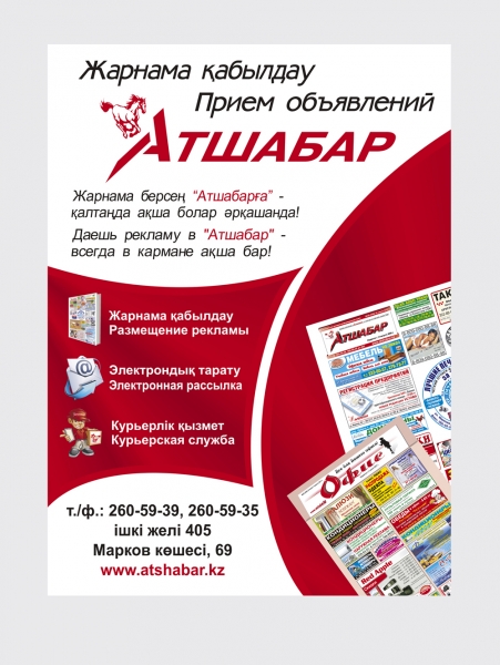 Сегодня «Атшабар» с использованием новых информационных технологий доставляет до читателя познавательные и рекламно-информационные вести!