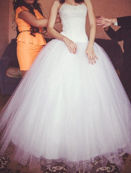 | Описание | Платье в идеальном состоянии, одето 1 раз.Размер 42-44 В подарок диадема-корона, и туфли если подойдут размер 39. | |