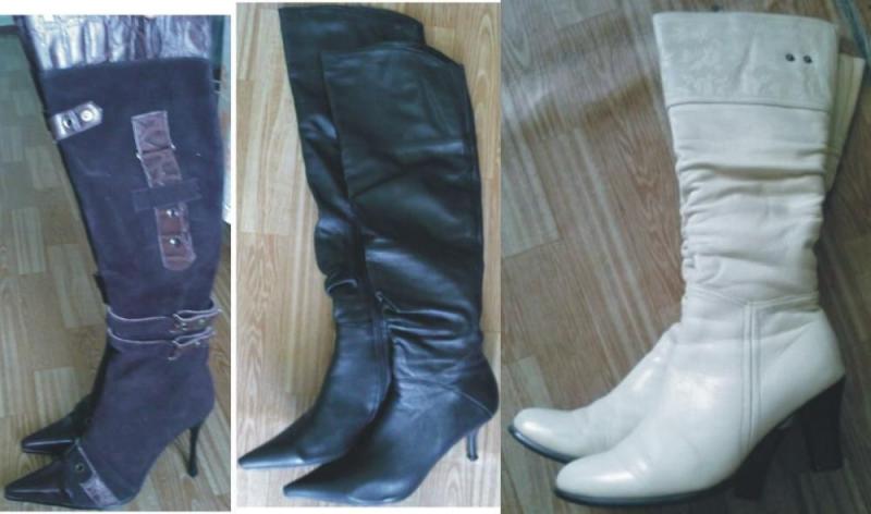 | Описание | Продам женские зимние сапоги - кожа, цвет белый, натуральный мех, теплые, размер 40, женские сапоги - классика (черный цвет - кожа) размер 39-40, женские сапоги коричневый цвет - замша, размер 39-40 пару раз одевала, почти новые. По ценам уточняйте - пишите ватсап, звоните 87773373559 | |