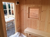 Окно В парилке 300 * 300мм, в предбаннике 600 * 600мм, деревянные окна, однокамерный стеклопакет.