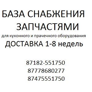 | Описание | Запчасти и расходные материалы для кухонного и прачечного оборудования. Доставка от 1 до 8 недель. Звоните. | |
