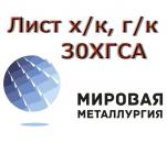 Предприятие ООО «Мировая Металлургия» продает листовую сталь 30ХГСА из наличия со склада. Осуществляем резку листа 30ХГСА по нужным вам размерам. Есть возможность отрезать небольшие размеры от листа сталь 30ХГСА. В наличии на складе лист холоднокатаный 30ХГСА ТУ 14-1-4118-2004, лист горячекатаный 30ХГСА ГОСТ 11269-76, ГОСТ 11268-76, ГОСТ 4543-71.