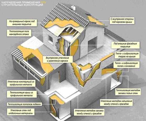 Утепление пенополиуретан (ППУ). Теплоизоляция и Гидроизоляция: емкости, бака. Утепление стен, потолков, зданий, боксов и цехов, мансарды, ангары, арочные склады, овощехранилища, скаты жел. кровель. Шумоизоляция ската кровли из м/черепицы, полим. проф. листа и пр. Пеноизол утепление заливкой. |
