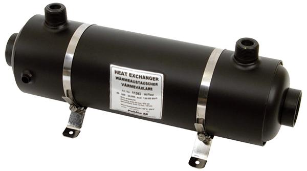 Теплообменники служат для подогрева воды в стационарном или каркасном бассейне, используют теплоноситель из отопительного контура. Это может быть как отдельный котел только для обогрева воды бассейна, так и котел системы отопления дома. Теплообменники предназначены для бассейнов всех типов. Корпус может быть выполнен из пластика, нержавеющей стали или титана.