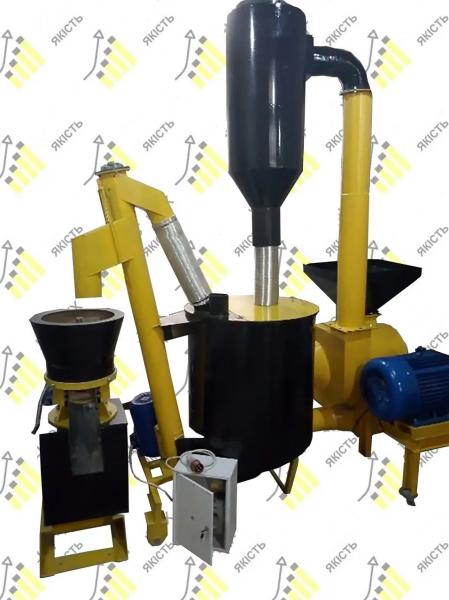 Состав линии: гранулятор пеллет и кормов PZ-300+Бункер дозатор (смеситель)+Молотковая дробилка DKU-500 (для измельчения щепы,стружки,зерновых).