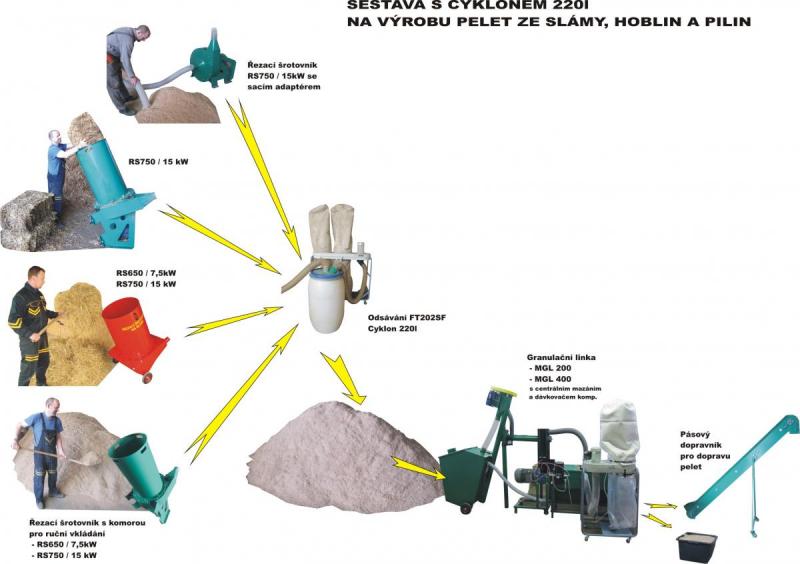 Сырье для гранулирования: зерноотходы, отруби, полова, солома/сено зерновых и других культур, премиксы, комбикорма/корма, и кормовые смеси, хмель, камыш, овечья шерсть, куриный комет, навоз, лузга подсолнечника/овса/гречихи и другая биомасса растительного происхождения, а также древесные опилки/стружки из мягких и твердых пород дерева.