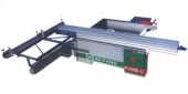 Длинная алюминиевая каретка (2800mm.) и широкий поперечный стол позволяют устанавливать и перемещать относительно пильного механизма листы большого размера. Пильный механизм включает в себя два режущих узла основную и подрезную пилу. Подрезная пила имеет попутное вращения относительно подачи заготовки и за счет предварительного реза позволяет раскраивать ламинированные листы ДСП без сколов.
