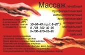 | Описание | МАССАЖ ЛЕЧЕБНЫЙ:МАНУАЛЬНЫЙ,ДЕТСКИЙ, ТАЙСКИЙ,АППАРАТНЫЙ ,АНТИЦEЛЛЮЛИТНЫЙ. КОРРЕКЦИЯ ПОЗВОНОЧНИКА.ВЕСА,ФИГУРЫ.ПИТАНИЯ. РЕАБИЛИТАЦИЯ :Д.Ц.П,ИНСУЛЬТ,ИНФАРКТ,ПЕРЕЛОМЫ... ВЫЕЗД НА ДОМ. ЗАПИСЬ ПРЕДВАРИТЕЛЬНАЯ. 87057003096 | |