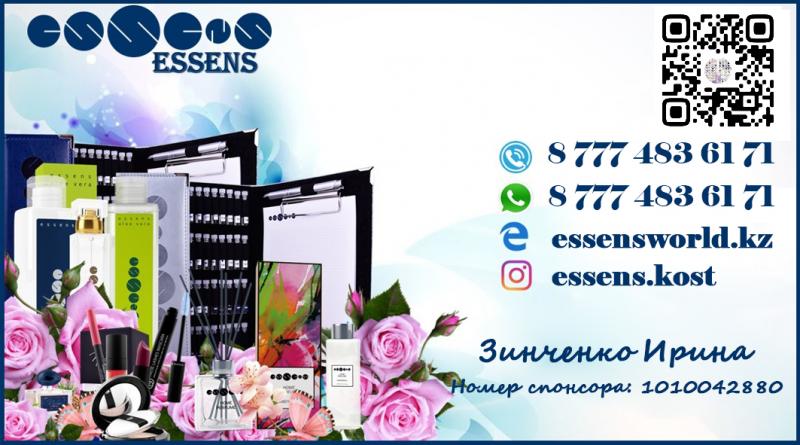Всем привет! Буду рада вашему интересу и вниманию к продукции Чешской фирмы ESSENS(Премиум класс), звоните, пишите, записывайтесь на бесплатную аромадегустацию. Замечательные покупки в ESSENS ждут вас и не оставят разочарованными.Девиз нашей компании:"Просто прикоснись, просто попробуй..."