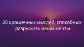 20 крошечных мыслей, способных разрушить наши мечтыПочему кто-то достигает желаемых целей, а кто-то — нет? Дело не в везении и удаче, а в том, что и как мы думаем каждый день.Что нужно для того, чтобы наши самые заветные желания стали реальностью? На самом деле, совсем немного — правильно...