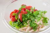 Салат куриный с кунжутомИнгредиенты:Куриная грудка — 1 шт.Огурец (длинный) — 2 шт.Соль (для огурцов) — ½ ч. л.Помидор — 2 шт.Лук шалот — 1 шт.Кинза — опциональноПоджаренный кунжут — 3 ст. л.Рисовый уксус — 2 ст. л.Соевой соус — 1 ст. л.Коричневый...