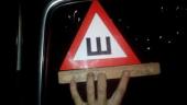 Отметим, что, согласно пункту девять «Основных положений по допуску транспортных средств» ПДД РК, на автомобиле должен быть установлен знак «Шипы», если транспортное средство оборудовано шипованной резиной. Сам знак — это равносторонний треугольник белого цвета, с каймой красного цвета, в который вписана буква «Ш» черного цвета. Сторона треугольника — не менее 200 миллиметров, ширина каймы — 1/10 стороны.